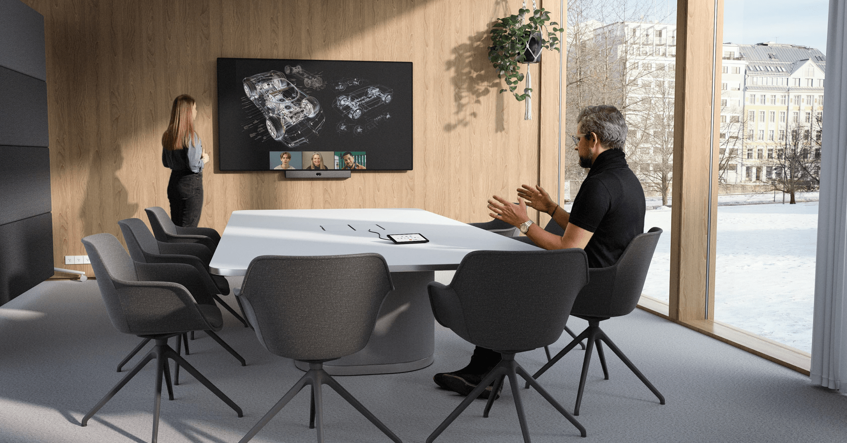 You can also share content with a USB‑C or HDMI cable or have your laptop run your meetings via a single USB‑C cable in BYOD mode.